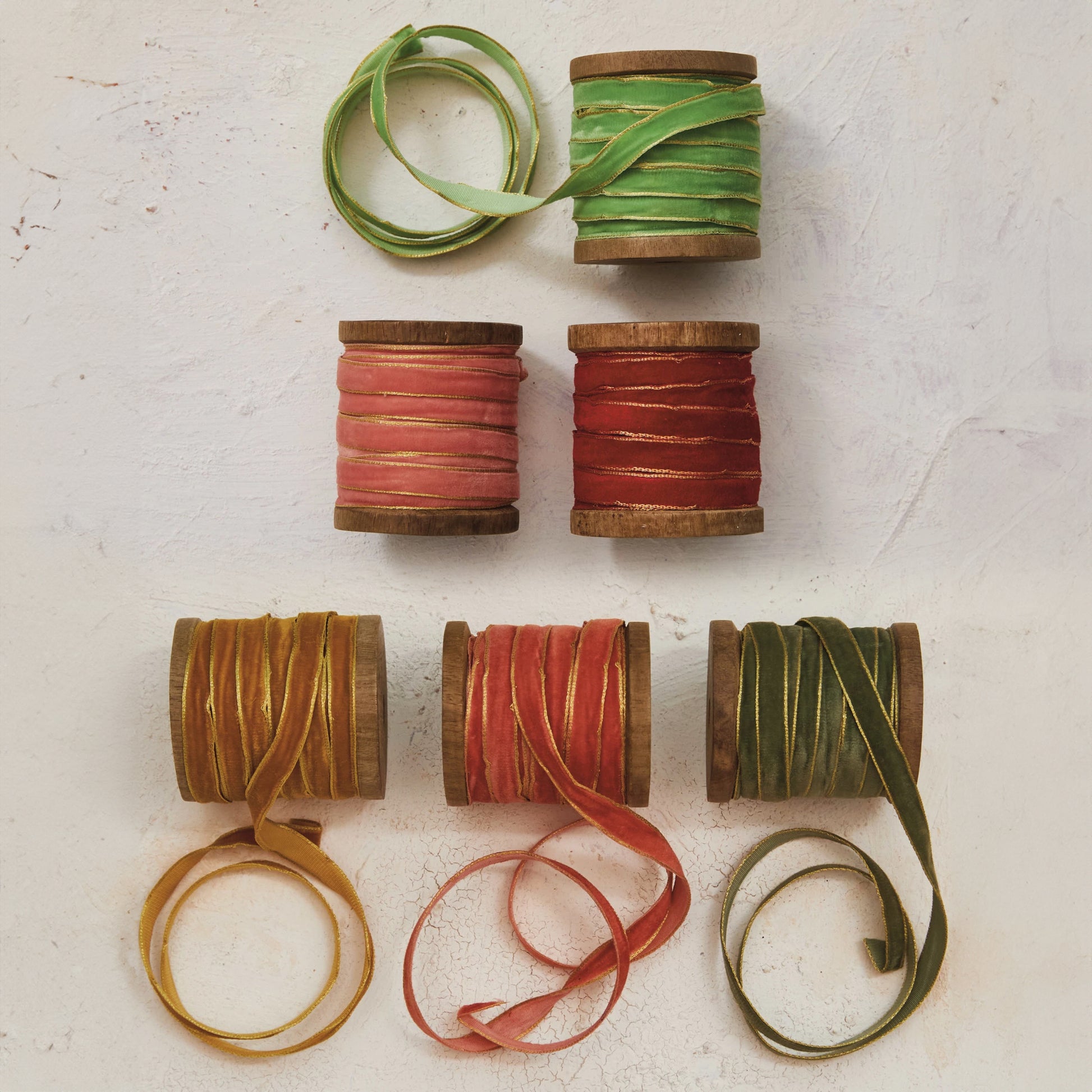 These velvet ribbons with metallic edges are a luxurious and elegant addition to the craft projects! Made of viscose and lurex, these ribbons have a velvety and glittery feel and are high-quality and flexible. Six color options to choose from, adding vibrancy and variety to the collection. The metallic edge adds contrast and sparkle! Use these for wrapping gifts, making bows, decorating cards, or embellishing home accessories... the options are endless! 10 yards per spool.