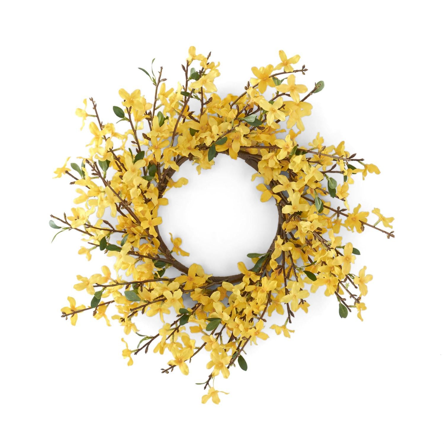 18 Inch Yellow Forsythia Candle Ring/Wreath