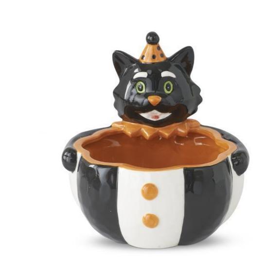 Bring a touch of spookiness to your Halloween display with our jack o'lantern bowl. It's the perfect size for a side table or desk and will blend well with other Halloween decor. Made of dolomite. Each sold separately. Cat bowl not available.