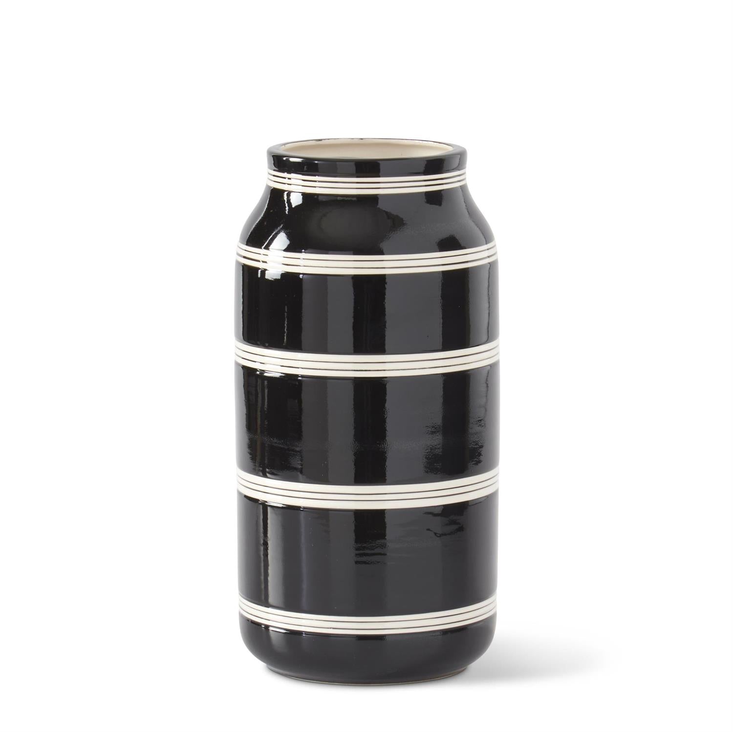 Simple and modern, these striped vases suit any home. Their black and white coloring and 3 different sizes make these vases so versatile! Each sold separately.