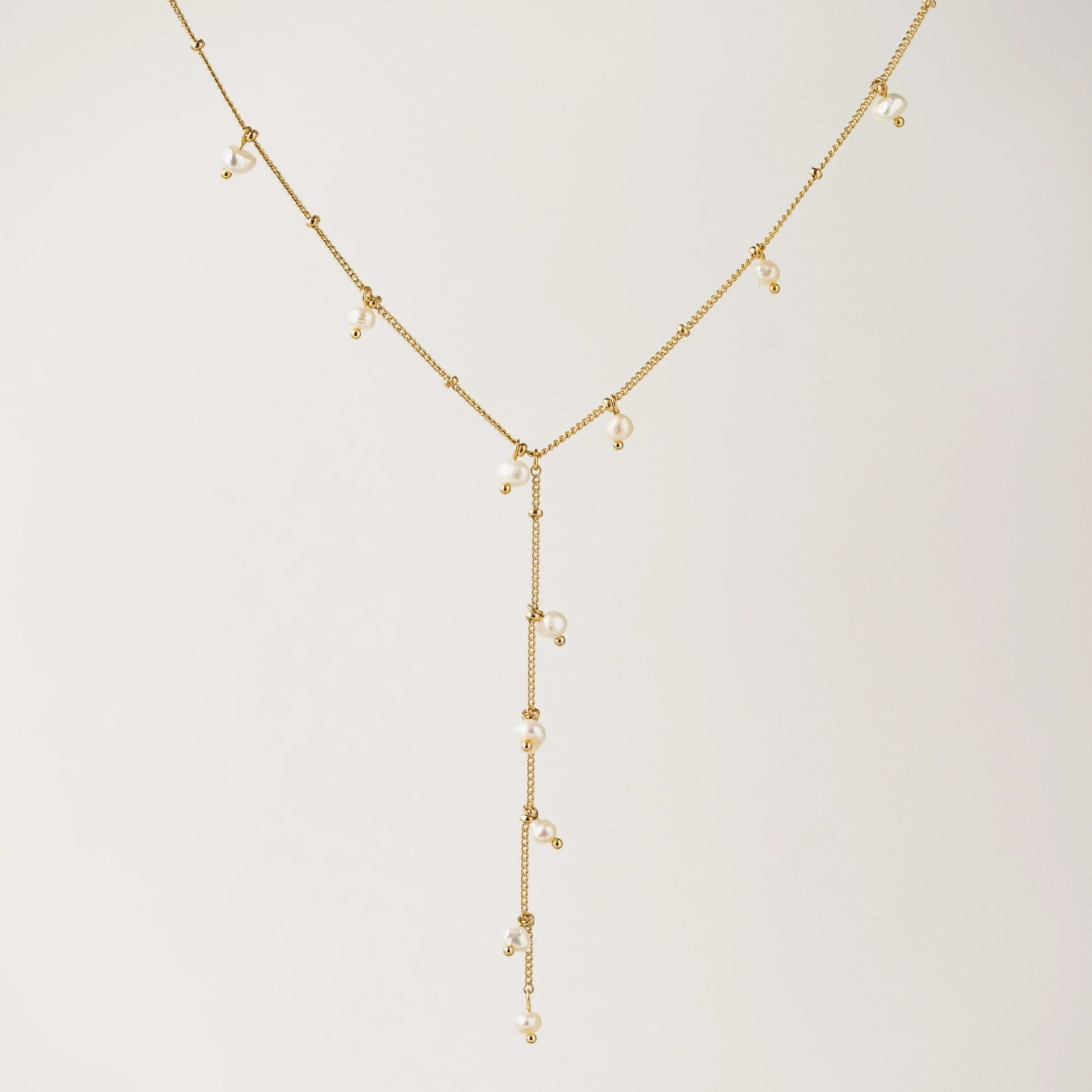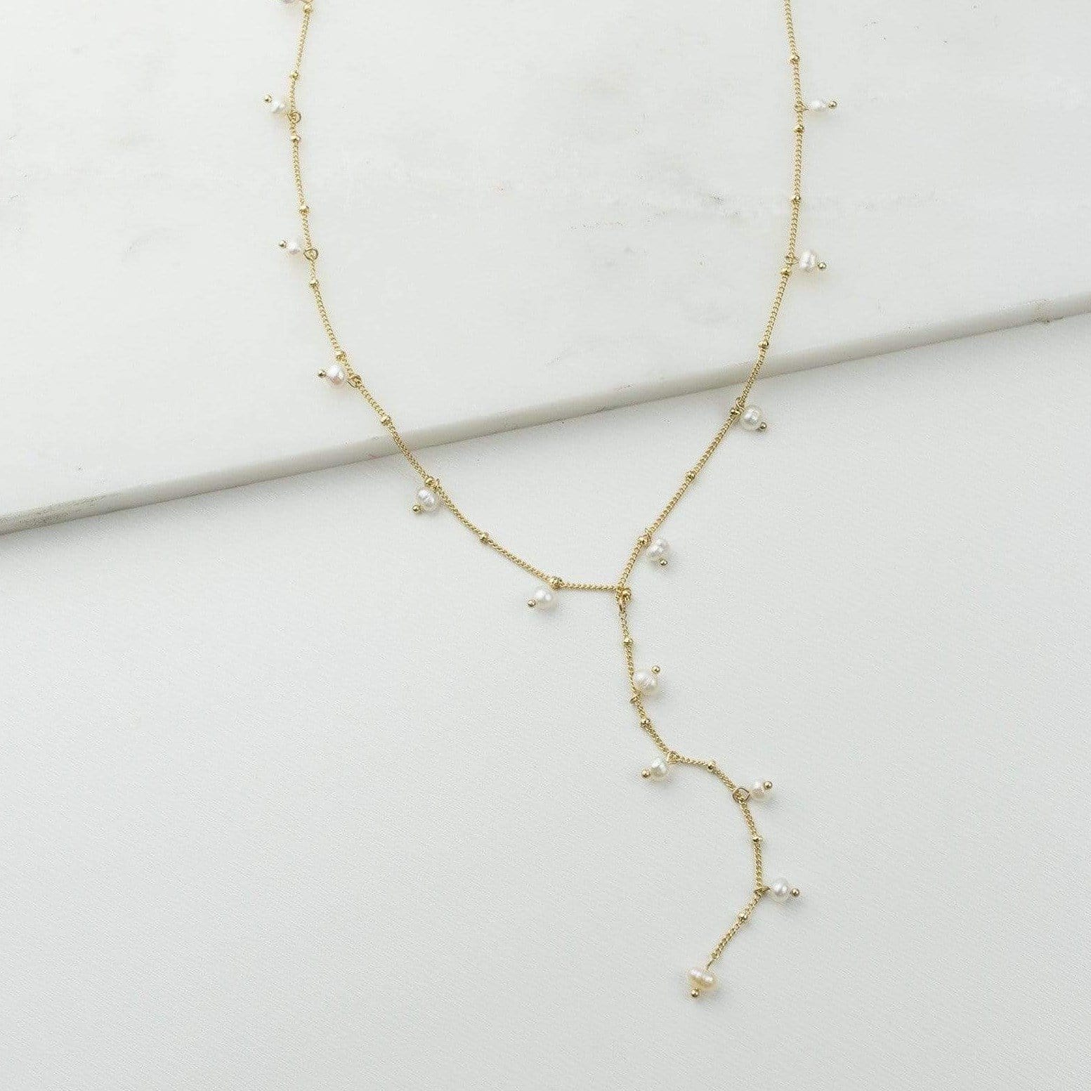 Dot Pearl Lariat Gold Necklace