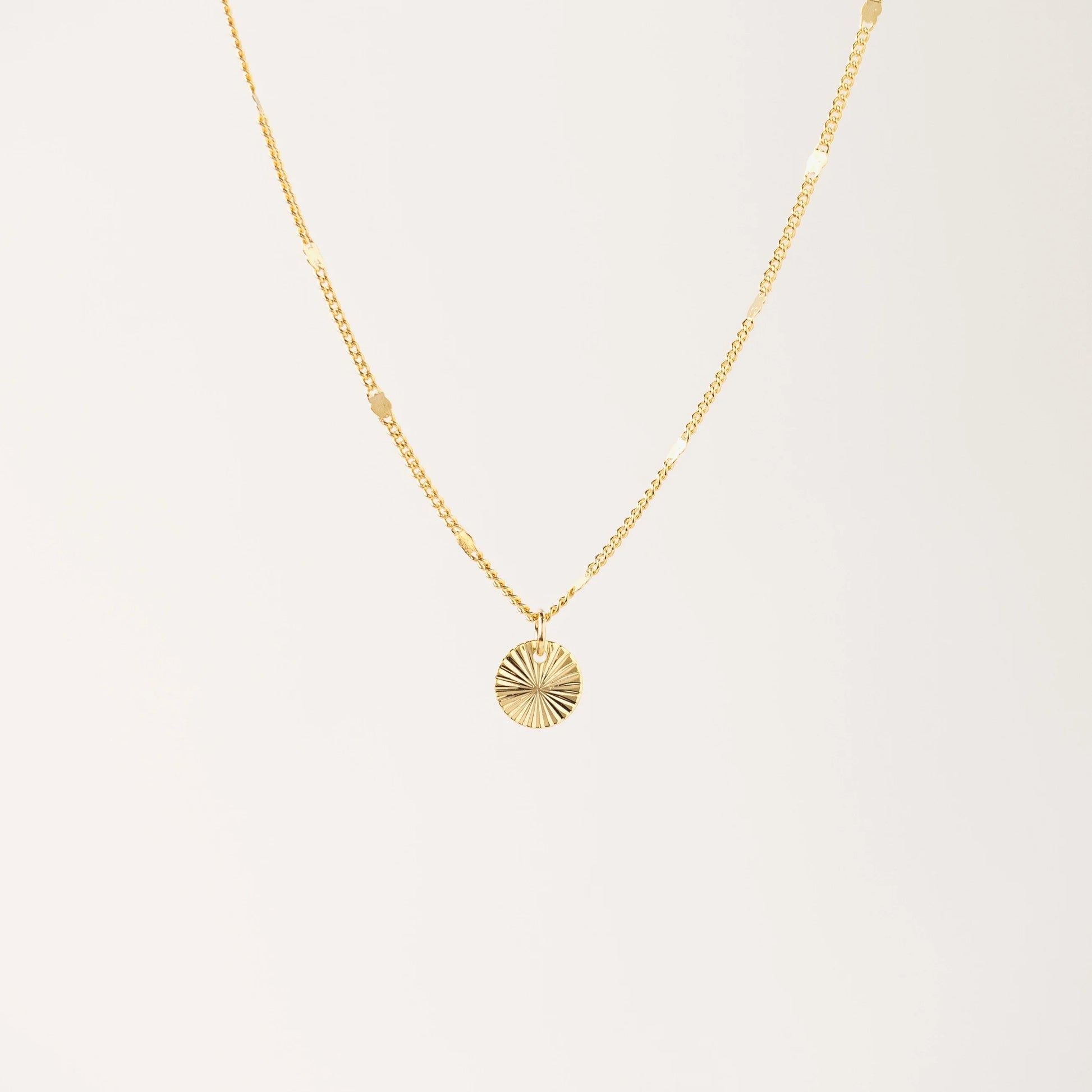 The Everly Circle Gold Necklace offers a touch of timeless sophistication. Crafted with a sleek, textured gold circle, it enhances any outfit with subtle elegance. Perfect for those who appreciate refined simplicity, this necklace adds a graceful, modern accent to your everyday or special occasion wardrobe.