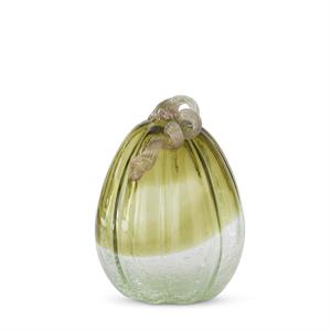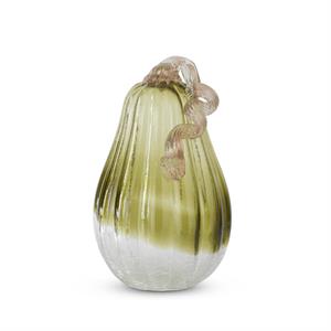 We love autumn decor! These handblown stunning pumpkins are green at the top and clear at the bottom, creating a stunning look. The curly stem features a little gold sparkle in the glass. Each one is slightly unique due to their handmade nature. Each sold separately. Only small size available.