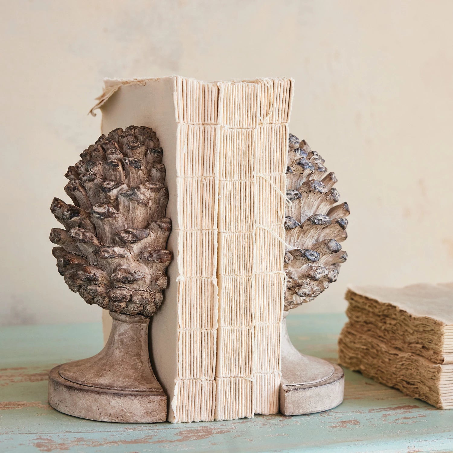 Resin Pinecone Shaped Finial Bookends w/ Distressed Finish