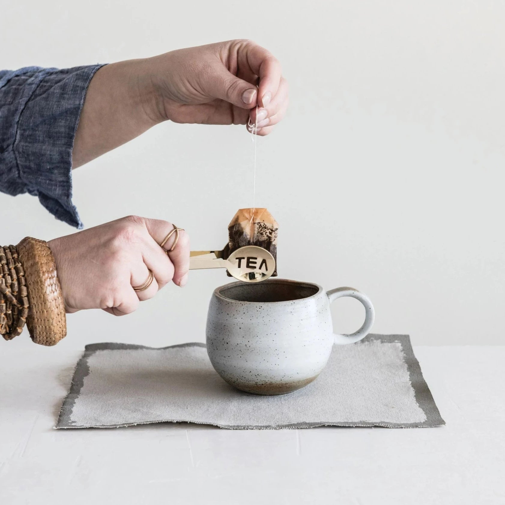 Choose the perfect flavor and grab a tea bag to immerse into your favorite mug full of hot water. While allowing the flavor to fully engulf the mug, wrap the string of the tea bag through the slot in the handle of this special spoon. This should eliminate the hassle of losing the whole string inside the mug. When the tea is ready, pull the bag out and squeeze excess water between the connected spoons. This spoon is a wonderful addition for any table setting or special gathering.