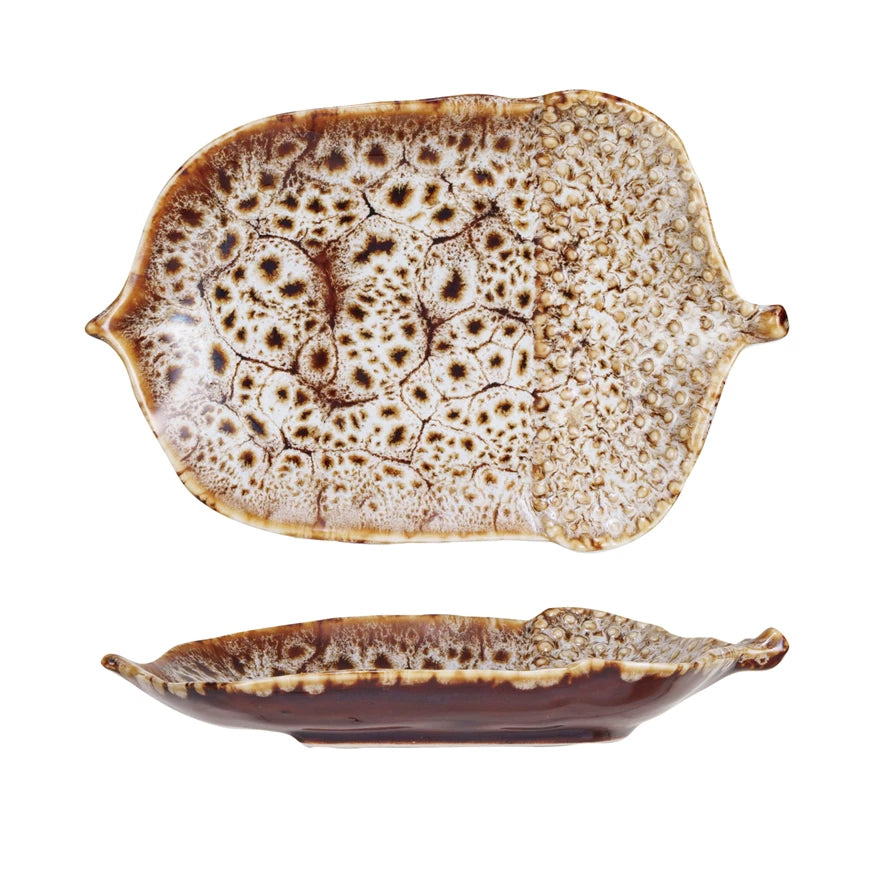 Stoneware Acorn Shaped Plate w/ Reactive Glaze