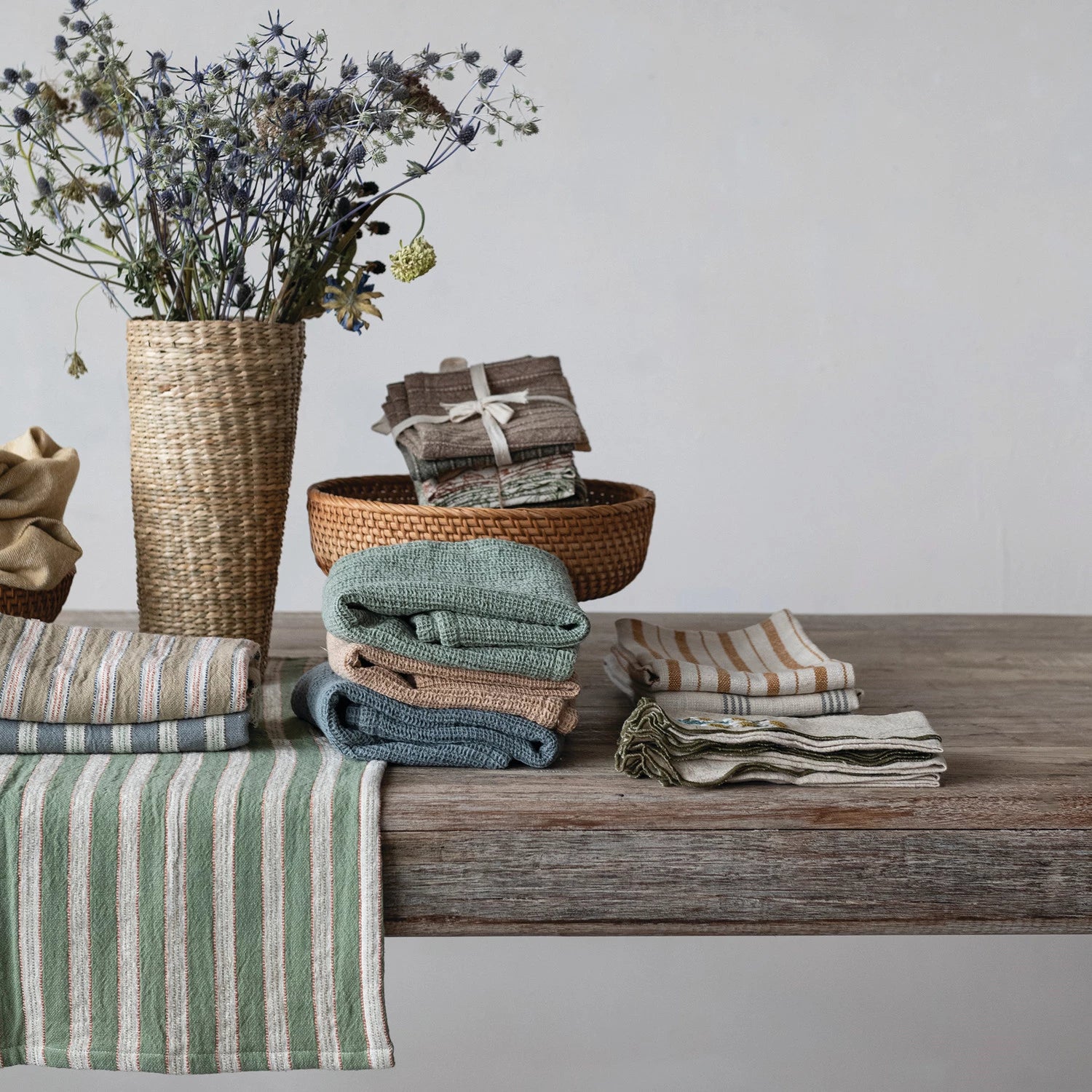 Bring timeless style to your kitchen with these expertly woven cotton slub tea towels, featuring refined striped patterns in three distinctive colorways. The textured slub weave adds dimension and character while maintaining the softness and absorbency you need for everyday kitchen tasks. From drying dishes to adding a polished touch to your countertop, these versatile towels work as hard as they look. Build your collection by selecting multiple styles and enjoy the perfect blend of form and function in every use. Each color sold separate.